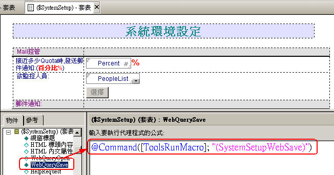 2. 在該套表的WebQuerySave事件中執行儲存Profile的代理程式.